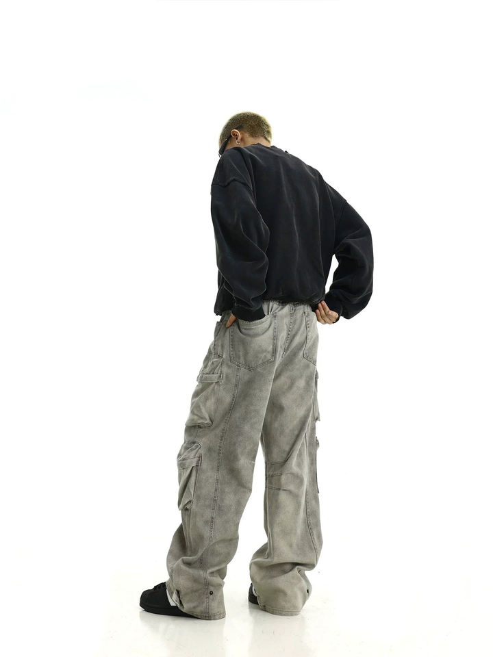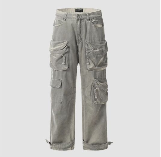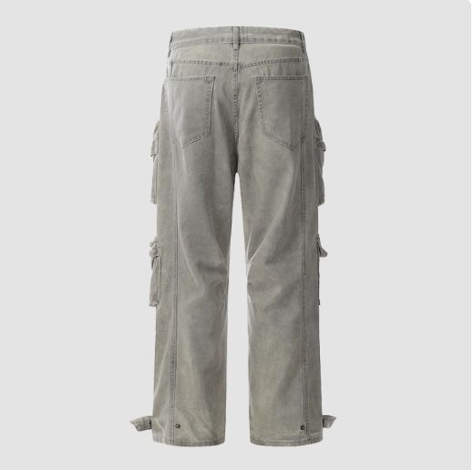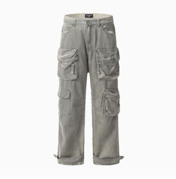กางเกงขาตรงผู้ชายทรงหลวมมีหลายกระเป๋าสไตล์วินเทจสำหรับผู้ชาย