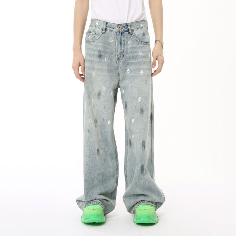 Streetlux กางเกงยีนส์ขาตรงสำหรับผู้ชายทรงหลวมลำลองดีไซน์เฉพาะ