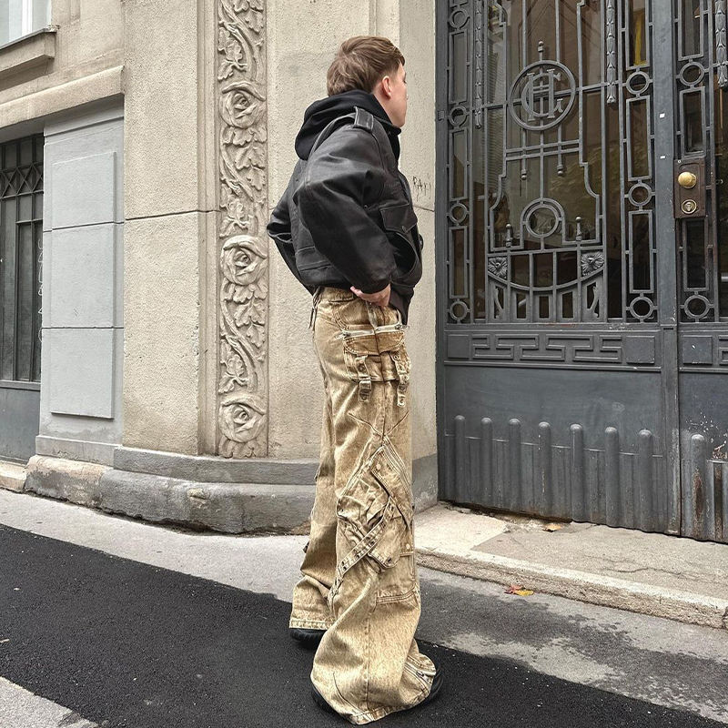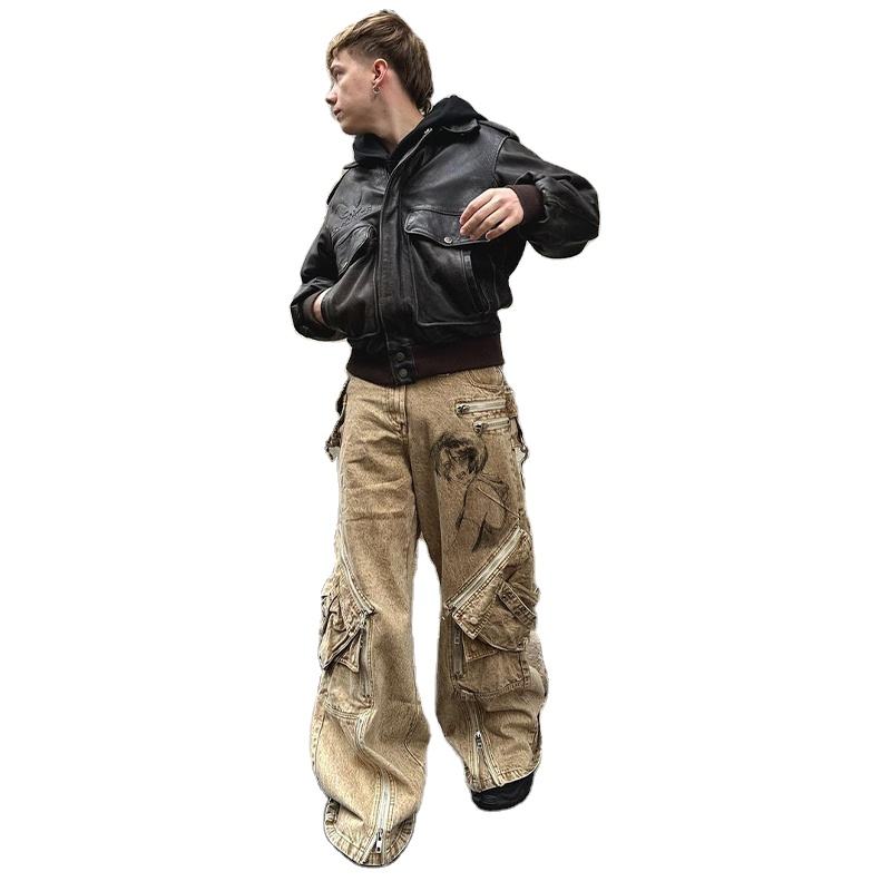 Streetlux กางเกงยีนส์ขายาวมีซิปขนาดใหญ่สำหรับผู้ชายกางเกงยีนส์เก่าแบบย้อนยุคออกแบบได้ตามต้องการ