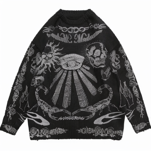 เสื้อสเวตเตอร์แบบสวมศีรษะของผู้ชายแนวสตรีทลักซ์เสื้อสเวตเตอร์ผ้าแจ็คการ์ดแนวฮิปฮอปอเนกประสงค์สำหรับฤดูใบไม้ร่วงและฤดูหนาว