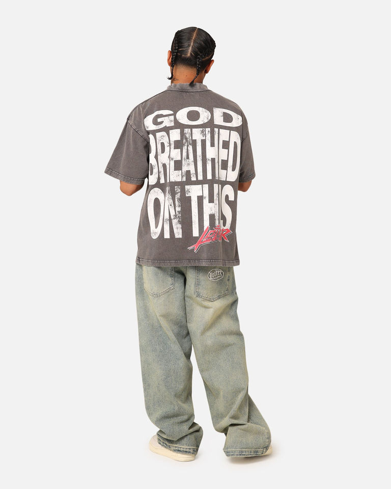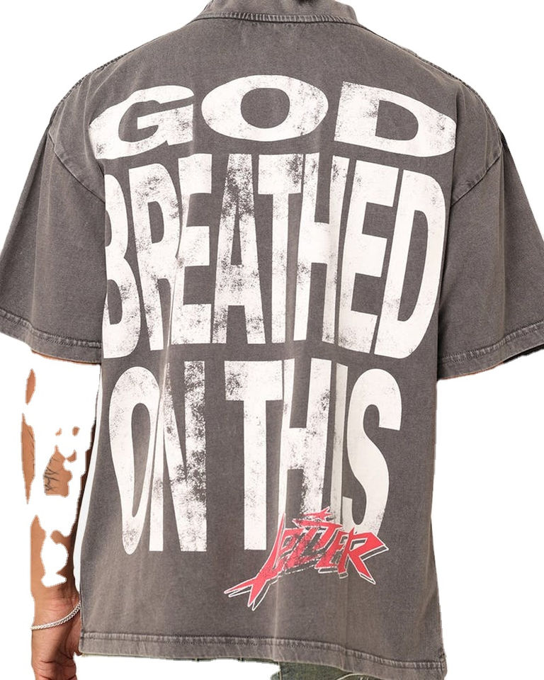เสื้อยืดผู้ชายลายกราฟิกแนวสตรีทแวร์สีแอซิดวินเทจ