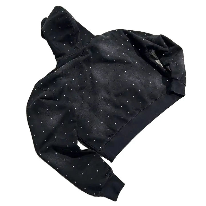 เสื้อมีฮู้ดติดพลอยเทียมสำหรับผู้ชายและผู้หญิงเสื้อมีฮู้ดใช้ได้ทั้งชายและหญิงผ้าฟลีซหนาพิมพ์ลายด้วยความร้อนบนหน้าจอออกแบบได้ตามที่ต้องการ