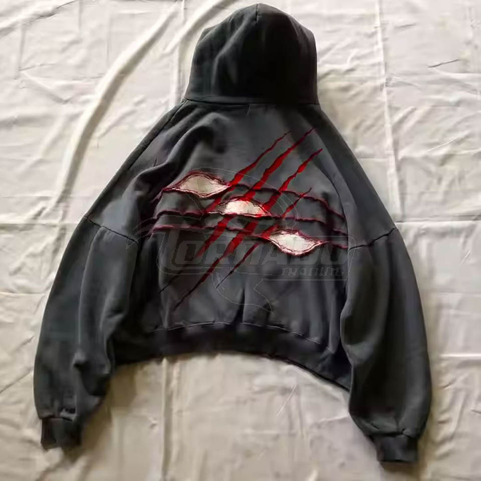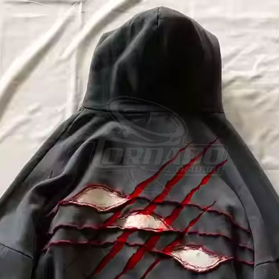 เสื้อฮู้ดดี้สตรีทแวร์ขายดี แต่งลายปักแบบดิสเทรส ผ้าคอตตอน/โพลีเอสเตอร์ทรงโอเวอร์ไซส์ คุณภาพสูง ออกแบบได้ตามต้องการ