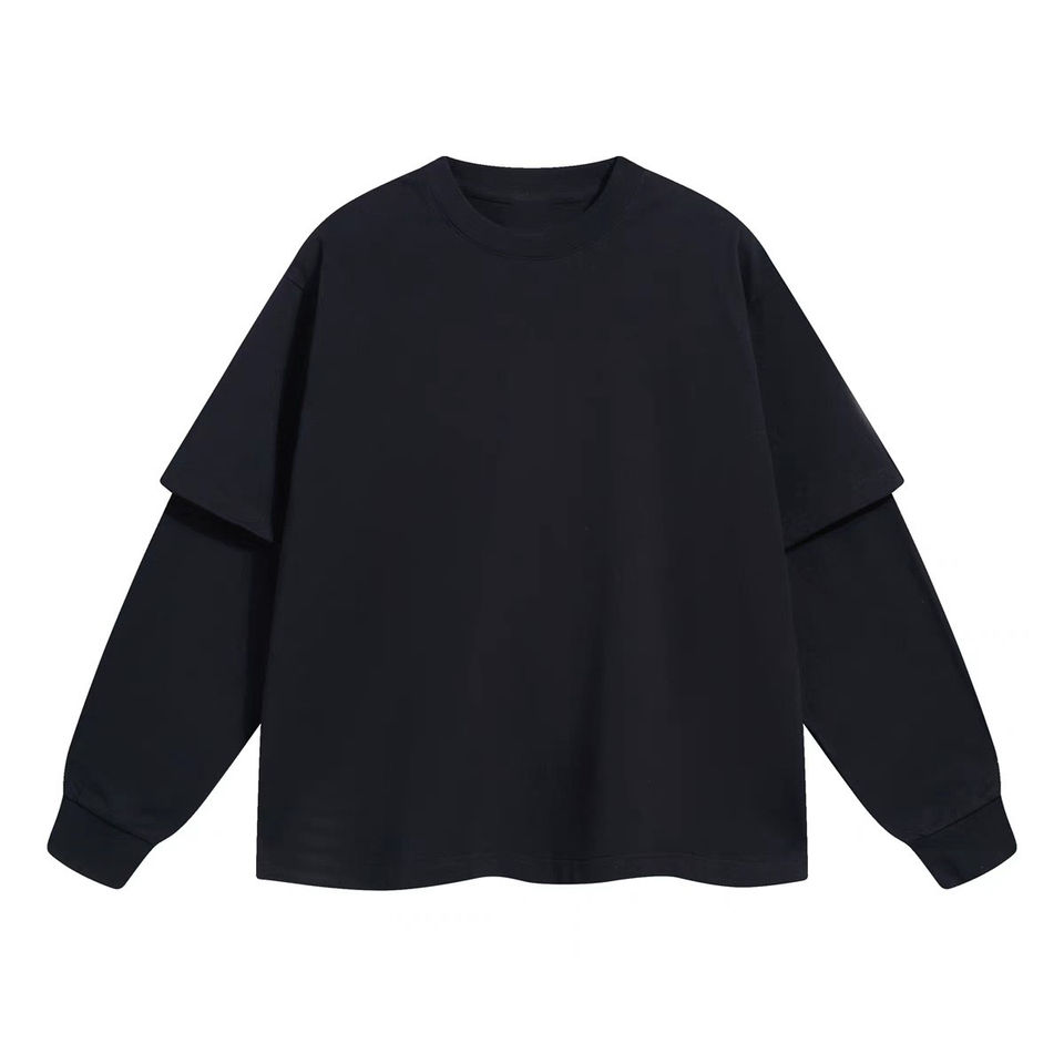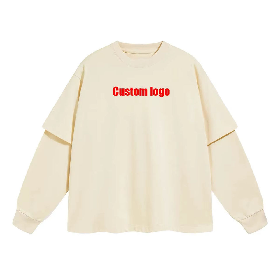 เสื้อยืดผู้ชายแขนยาวสตรีทแวร์ผ้าฝ้าย100% สองชั้นระบายอากาศเป็นมิตรกับสิ่งแวดล้อม