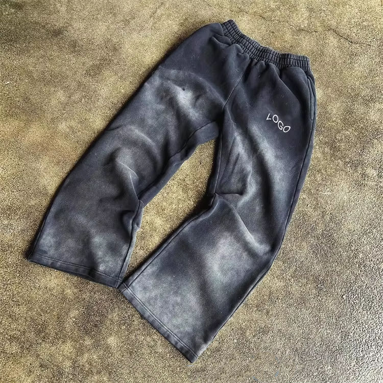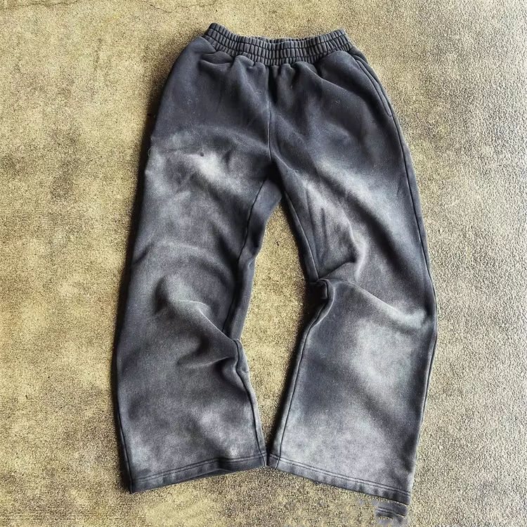 กางเกงลำลองขากว้างพิมพ์ลายสตรีทแวร์แนววินเทจผ้าหนาซักซีดออกแบบได้ตามต้องการ