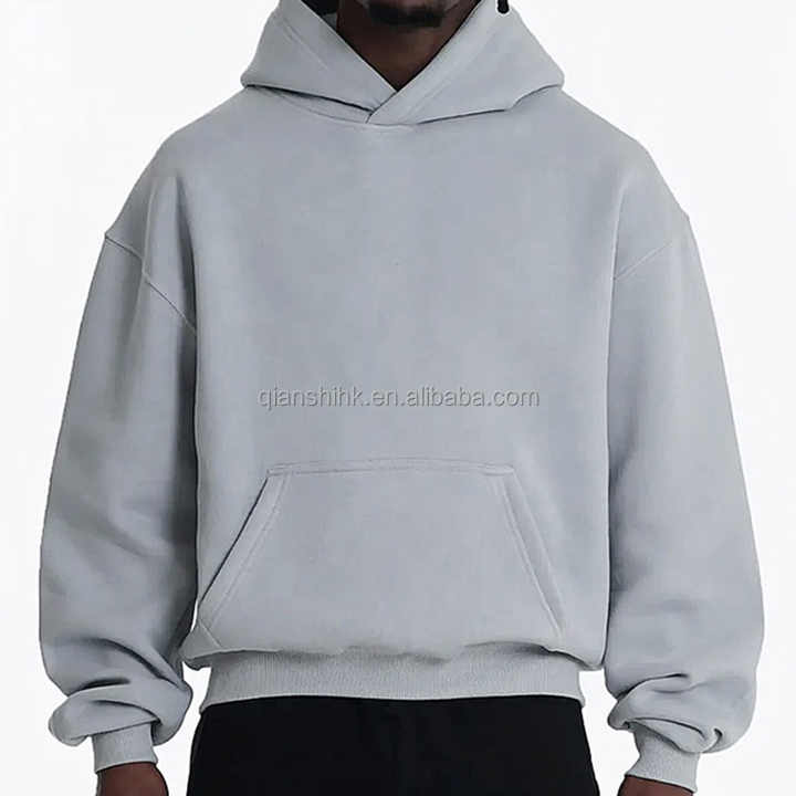 Streetwear Boxy Plain Hoodies Custom High Quality French Terry 100%cotton Hoodie Unisex Drop Shoulder Oversized Blank Hoodies
