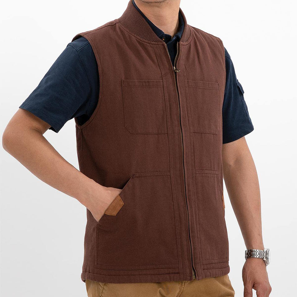 เสื้อกั๊กผ้าใบแนวสตรีทระบายอากาศสำหรับผู้ชายเสื้อกั๊กผ้าใบแขนกุดสำหรับกีฬากลางแจ้งฤดูหนาว
