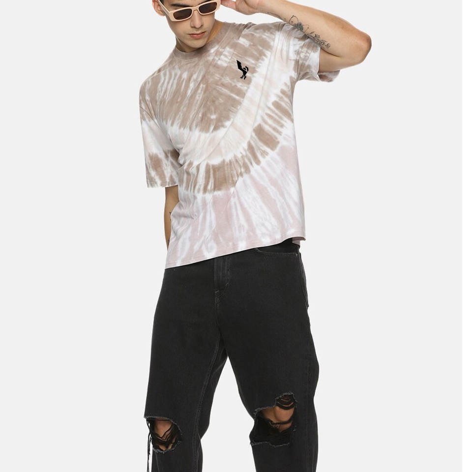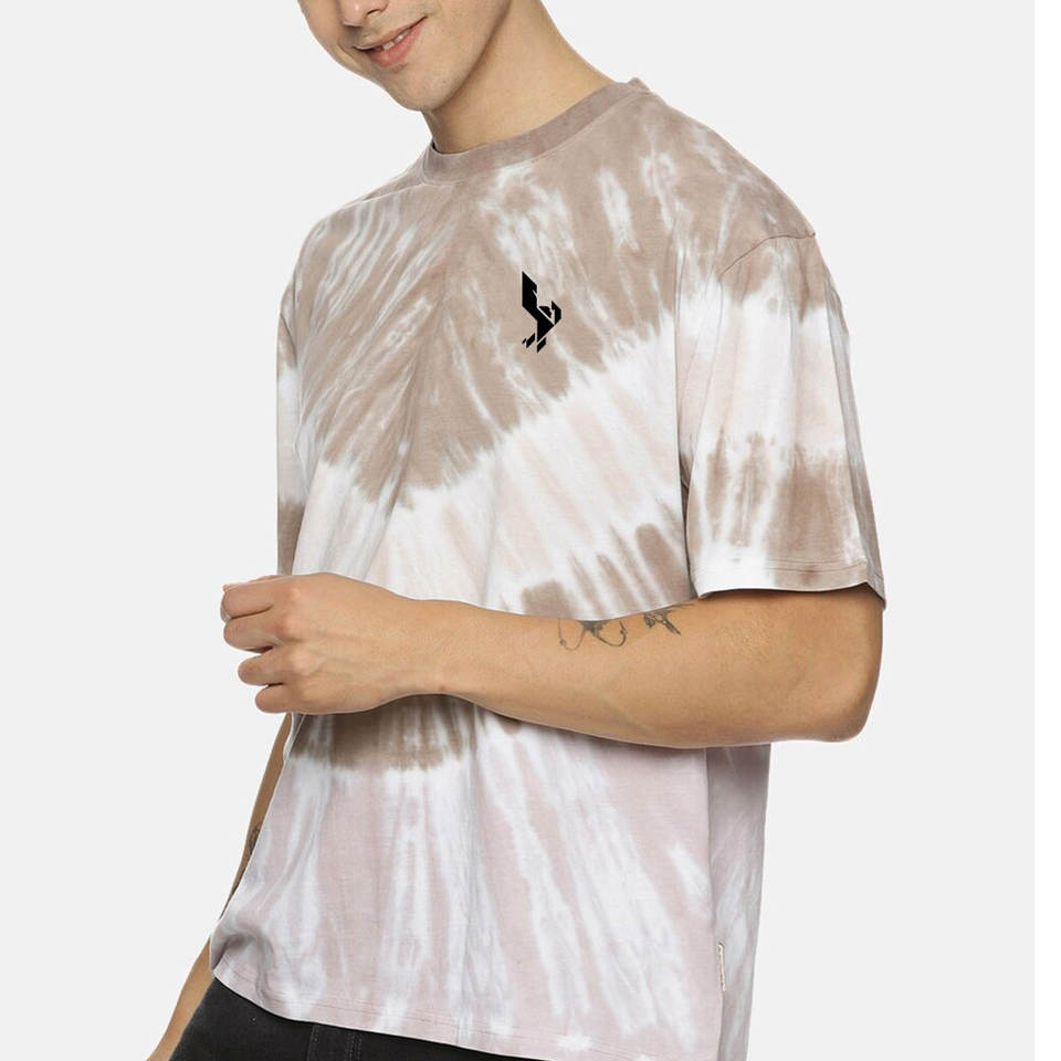 เสื้อยืดสตรีทแวร์ลำลอง ผ้าฝ้าย 100% ลายมัดย้อม ผ้าฟลีซกันเป็นขุย คุณภาพพรีเมียม ทรงไหล่ตก ใส่ได้ทั้งชายและหญิง