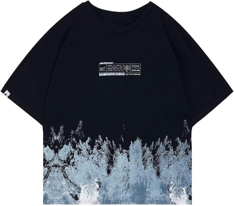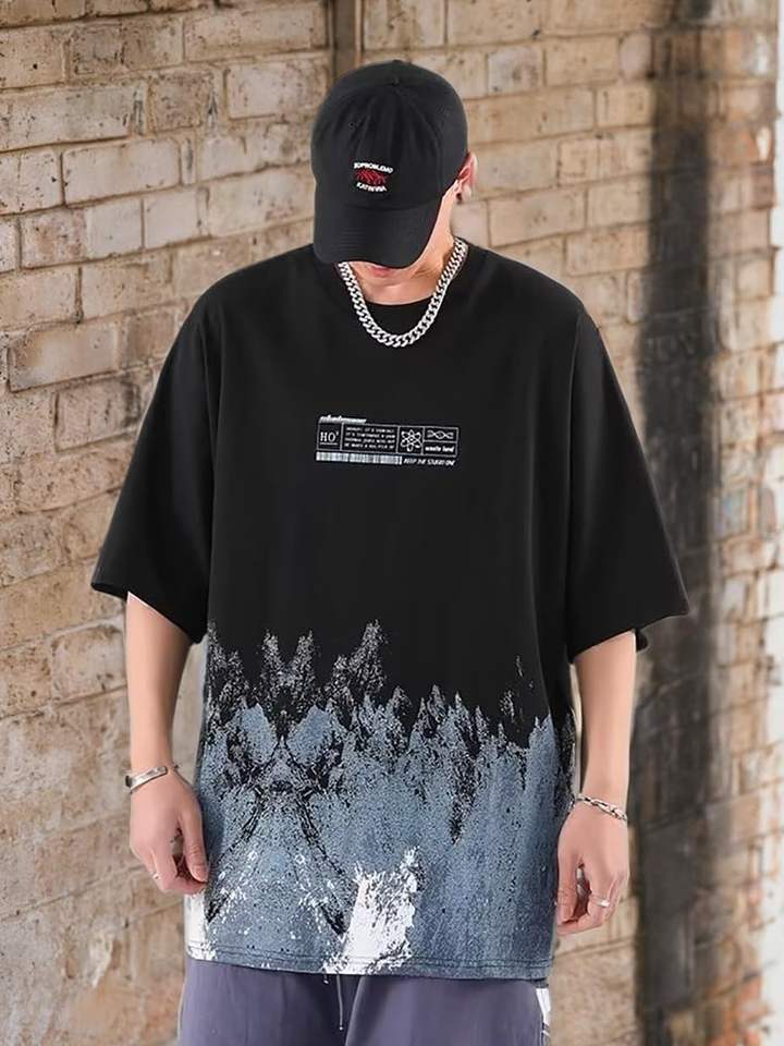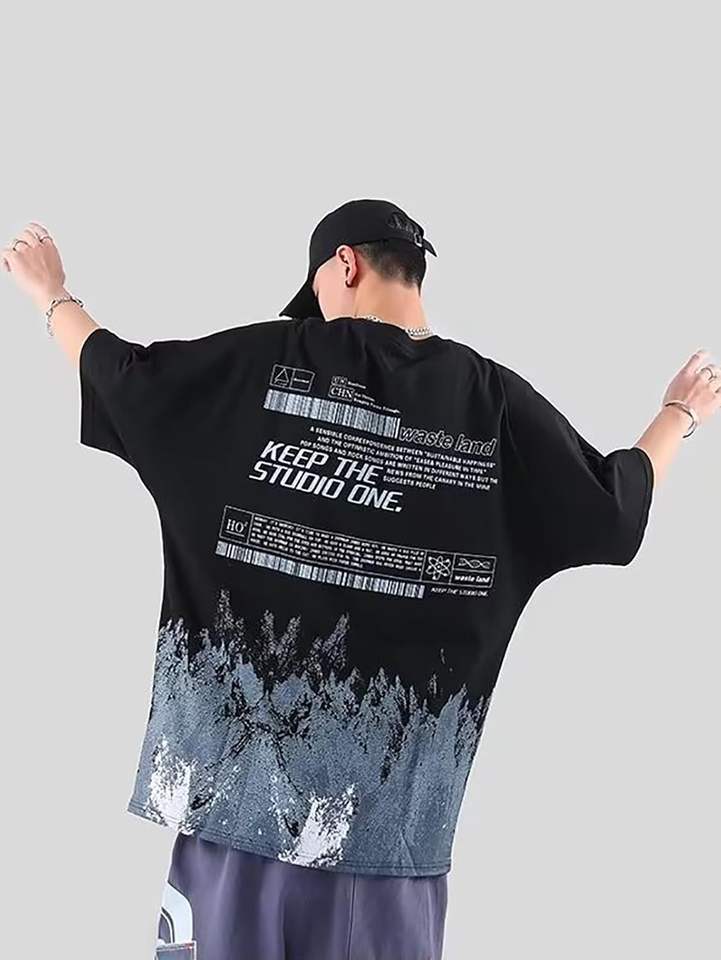 เสื้อยืดลำลองแนวสตรีทผ้าคอตตอน100% โลโก้ด้านหน้าทรงหลวมเข้ารูป