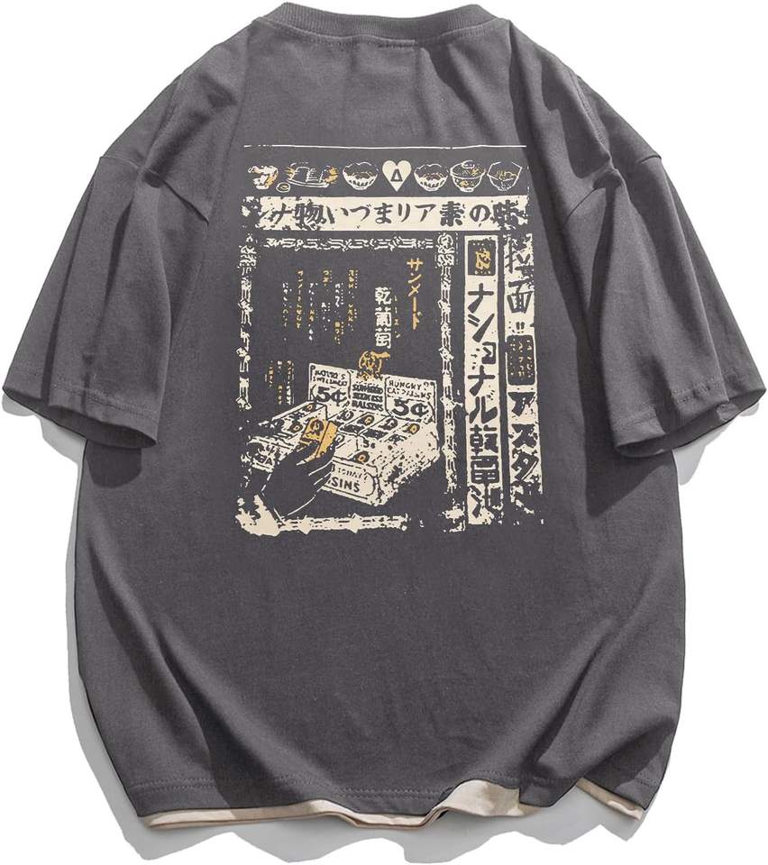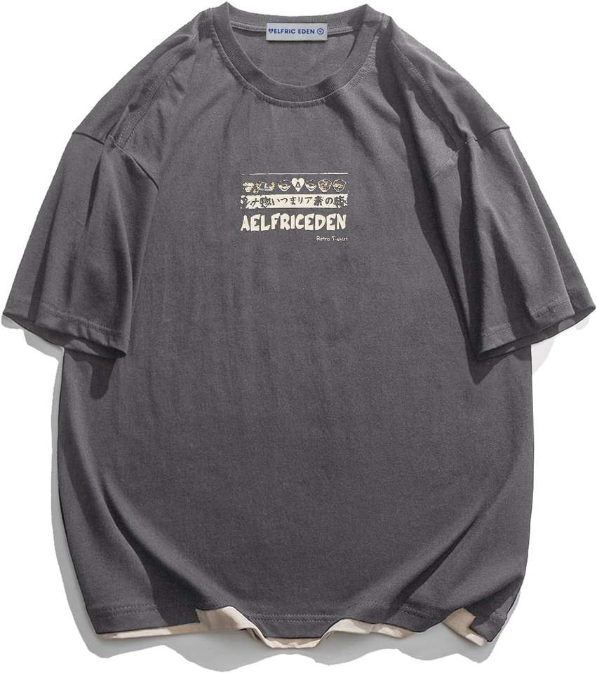 เสื้อยืดลำลองแนวสตรีทผ้าคอตตอน100% โลโก้ด้านหน้าทรงหลวมเข้ารูป