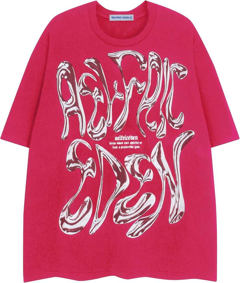 เสื้อยืดลำลองแนวสตรีทผ้าคอตตอน100% โลโก้ด้านหน้าทรงหลวมเข้ารูป