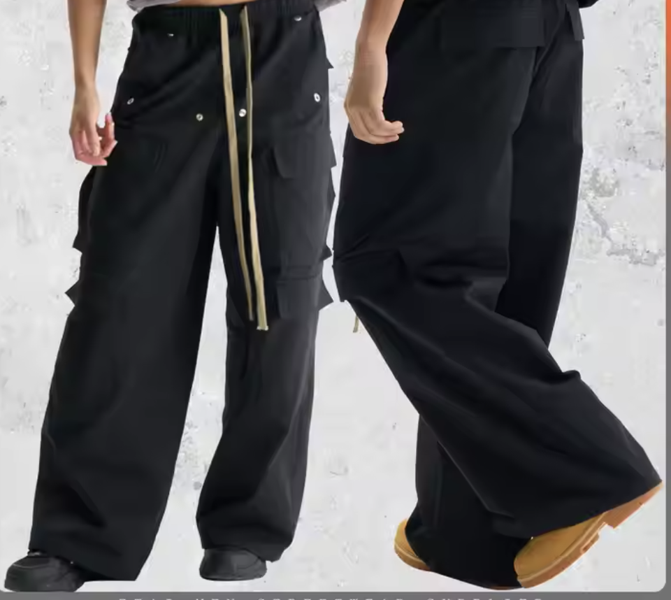 กางเกงสตรีทแวร์ปี 2024 ปักลายตามสั่ง กางเกงคาร์โก้ผู้ชาย กระเป๋าหลายช่อง ขาดๆ เอวสูง ผ้ายีนส์ทรงบาน ขากว้าง ทรงสแต็ค ไซส์พลัส