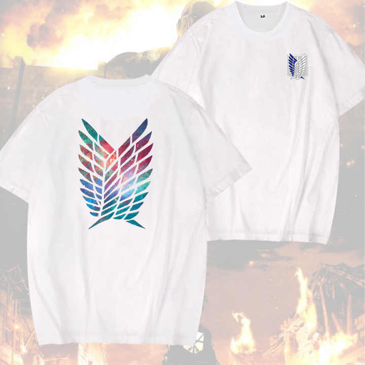Streetwear Clothes Men T-shirt Wings of Liberty T-shirts Ai Lun Anime Combed Cotton T Shirt Attacking Giant Anime Cotton Shirt