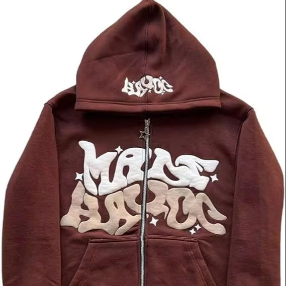 เสื้อฮู้ดซิปแบบโอเวอร์ไซส์สไตล์สตรีทแวร์ลำลองสำหรับฤดูหนาว พร้อมลายกราฟิก 3 มิติ คุณภาพสูง ผลิตจากผ้าฝ้าย 100%