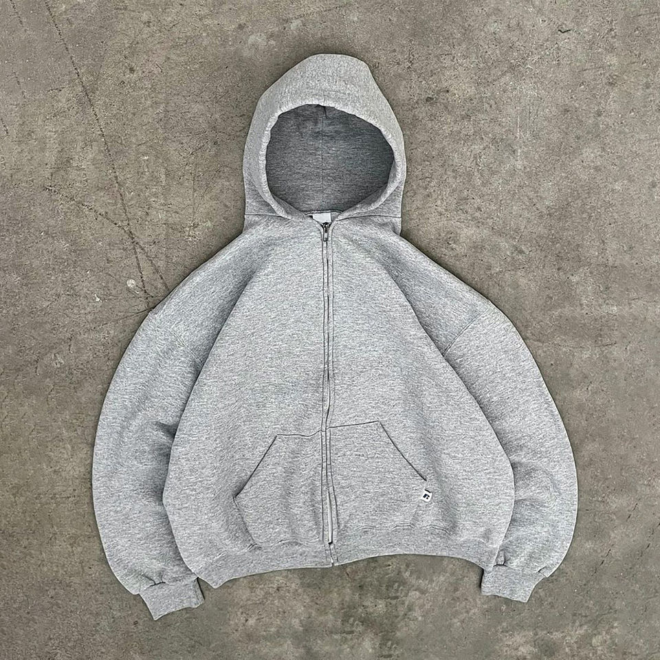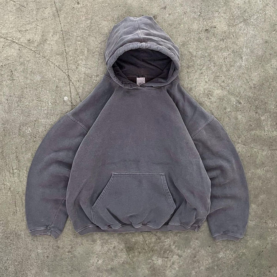 เสื้อฮู้ดสตรีทแวร์ผ้าฝ้ายวินเทจฟอกสีสไตล์ดิสเทรส ปักลายวินเทจ เสื้อฮู้ดเปล่าฟอกสี 2025
