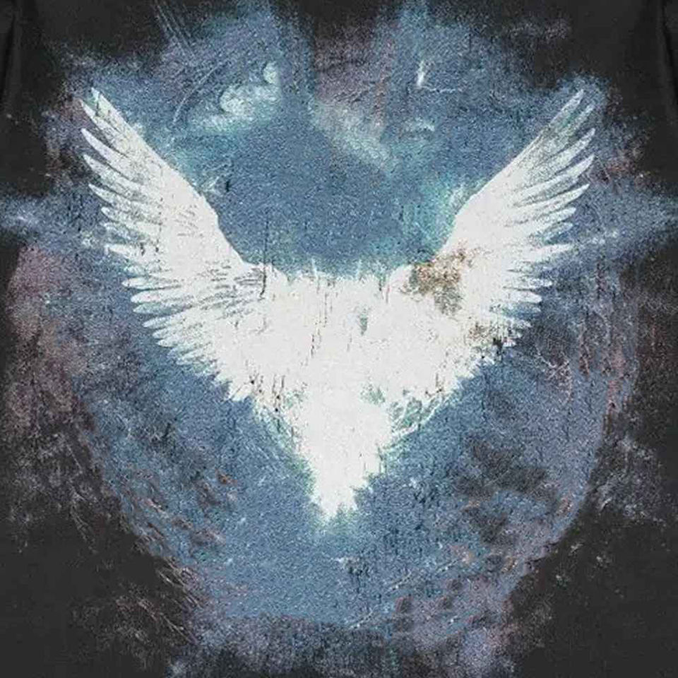 เสื้อยืดสตรีทแวร์ลายโลโก้แบบวินเทจ ล้างสีแบบแอซิดวอช สองชั้น พิมพ์ลายสกรีนแบบเทอร์มอล ทรงครอป สีซีดแบบโดนแดด สำหรับผู้ชาย