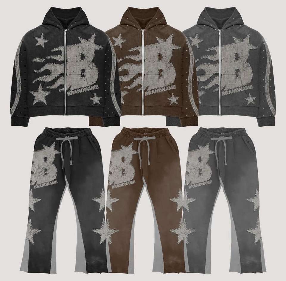 ชุดวอร์มแบบกำหนดเองสำหรับผู้ชายชุดวอร์ม2ชิ้นกางเกงขาบานชุดวิ่งมีฮู้ดพิมพ์ลายหิน