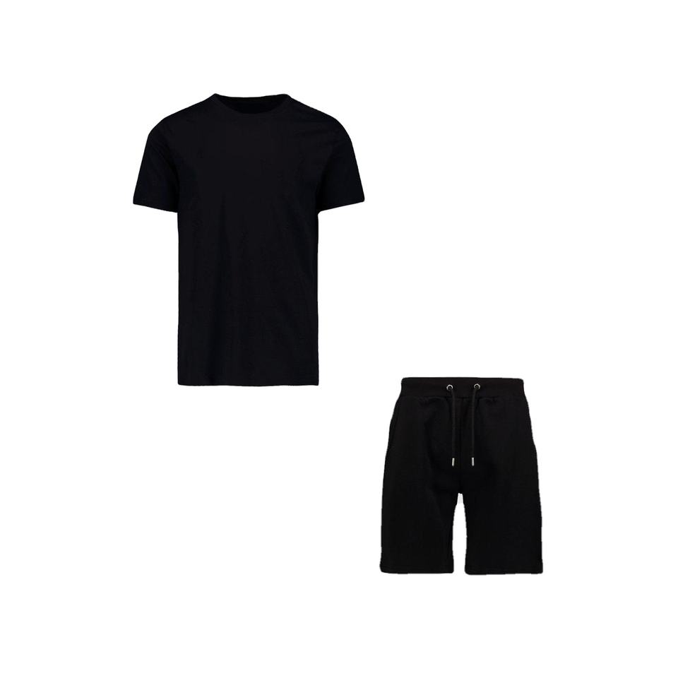 ชุดสตรีทแวร์ออกแบบโลโก้เองได้ ชุดเซ็ตสองชิ้นสำหรับผู้ชาย เสื้อยืดและกางเกงขาสั้นย้อมสีเอซิด ชุดฤดูร้อนสำหรับผู้ชาย