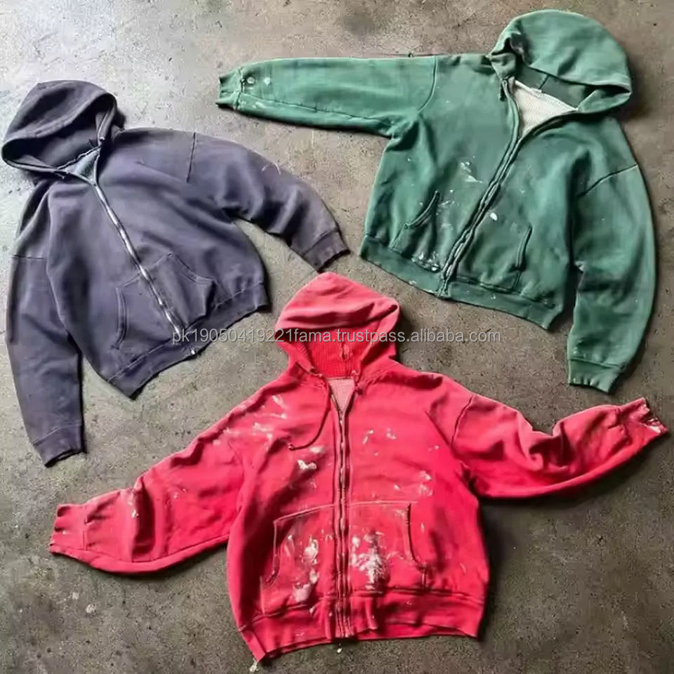 Streetwear Custom logo Oversize Thermal Vintage Acid Wash Distressed Waffle New Style Pullover Winter Embroidered Hoodies Men