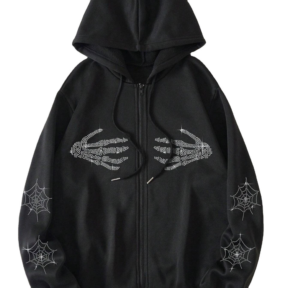 เสื้อมีฮู้ดสำหรับผู้ชายเสื้อมีฮู้ดพลอยเทียมหนาออกแบบโลโก้ได้ตามต้องการแนวสตรีท