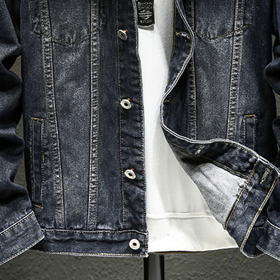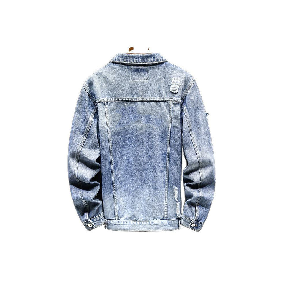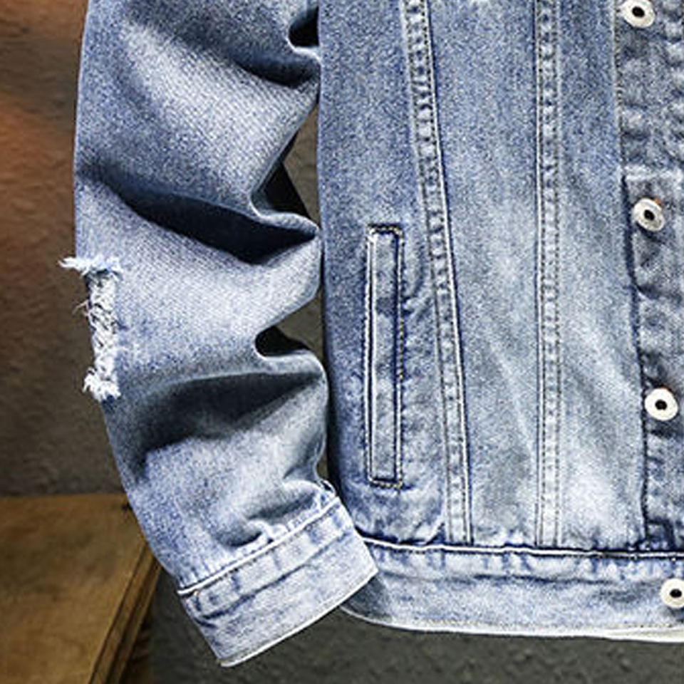 แจ็คเก็ตยีนส์สตรีทแวร์ ดีไซน์สั่งทำพิเศษสำหรับผู้ชาย แจ็คเก็ตยีนส์ติดกระดุมแบบขาดๆ