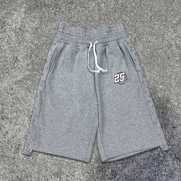 กางเกงขาสั้นกันเหงื่อสำหรับผู้ชายกางเกงขาสั้นผ้าฝ้ายเอวสองชั้นดีไซน์เนอร์แนวสตรีทแวร์