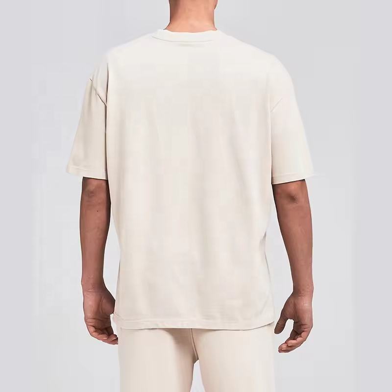 เสื้อยืดสตรีทแวร์ทรงหลวม คอทรงกลม ผ้าคอตตอนหนา 200gsm ไซส์ใหญ่พิเศษสำหรับผู้ชาย