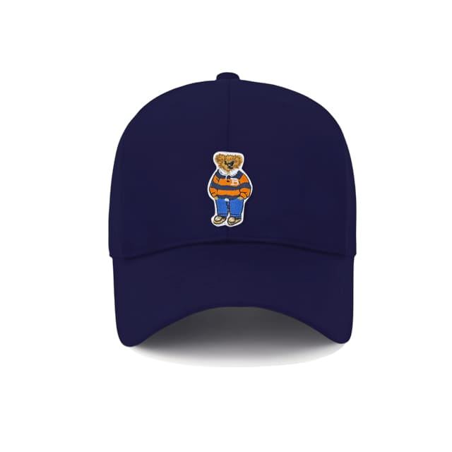 หมวกเบสบอลปักลายแนวสตรีทพร้อมฝาปิดโลหะดีไซน์หมีสีส้มฟ้า100% สำหรับผู้ใหญ่และหญิง