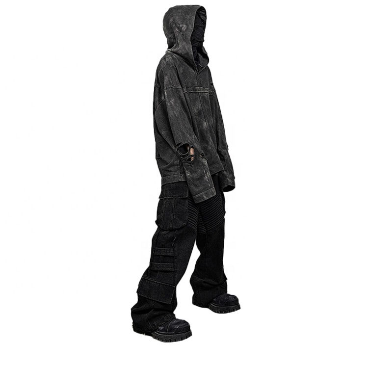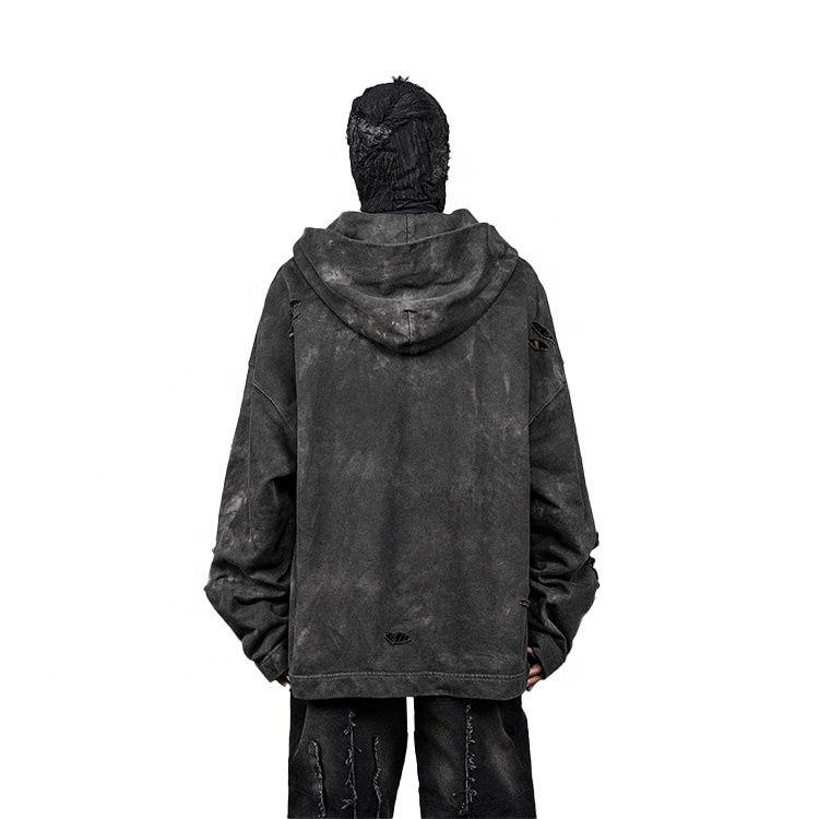 เสื้อมีฮู้ดผ้าคอตตอนฟอกสีออกแนวสตรีทแวร์ผ้าคอตตอน
