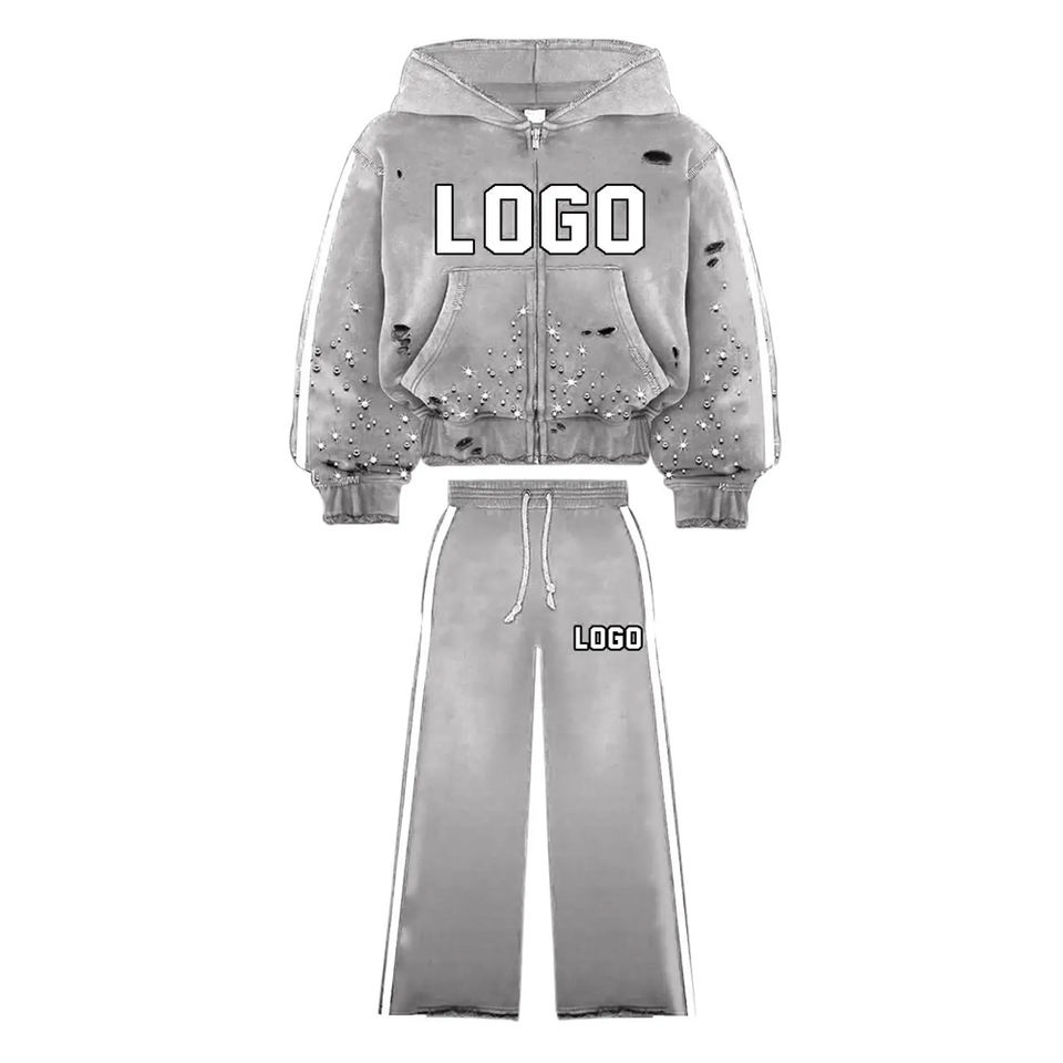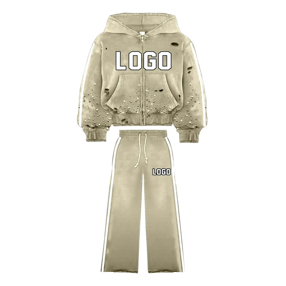 Streetwear Fleece Cotton Regular Fit Hooded Drawstring Solid Plus Size Tracksuit Set Custom Silk Screen Printed Heavyweight Acid