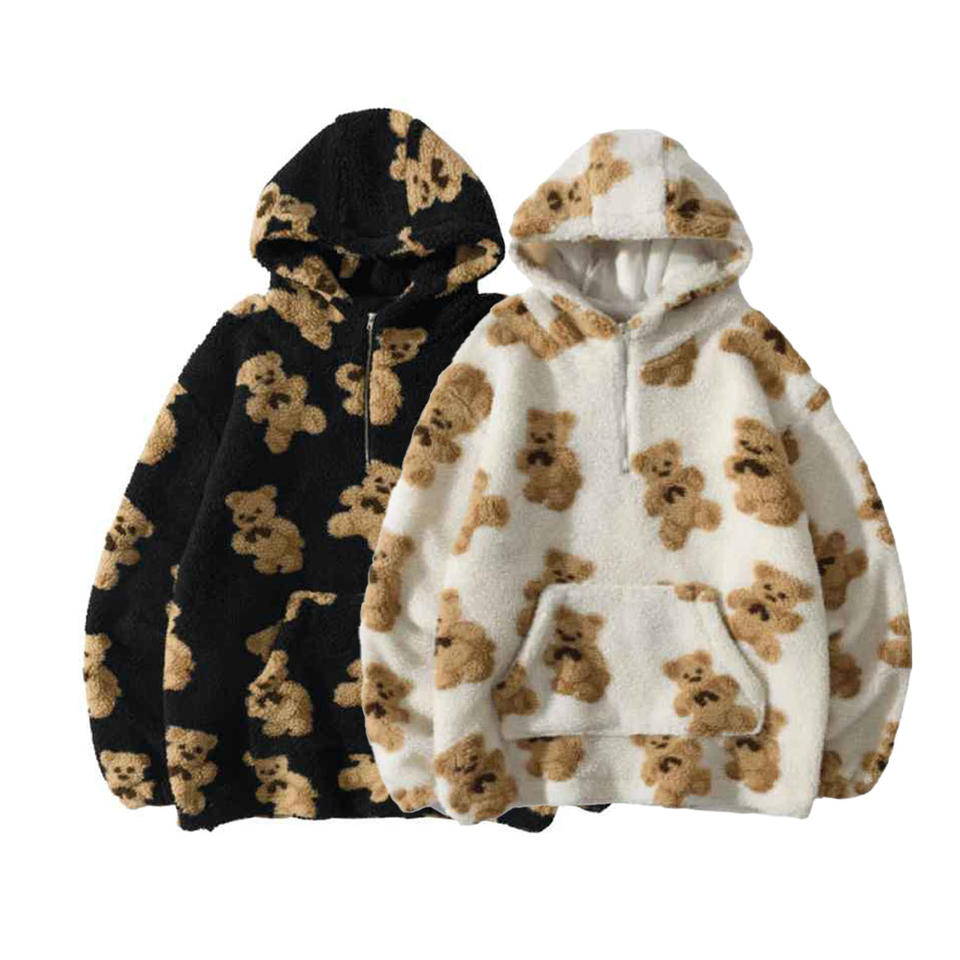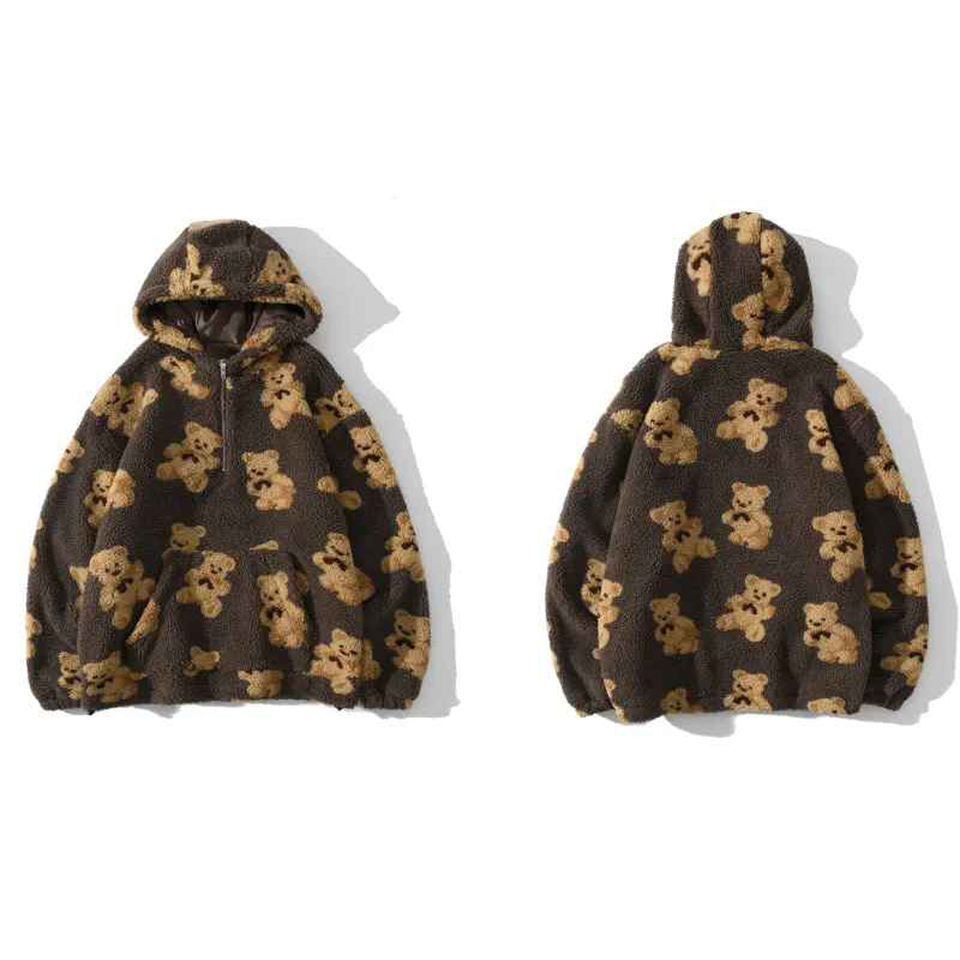 เสื้อฮู้ดขนแกะแบบมีซิปครึ่งขนแกะแนวสตรีทเสื้อมีฮู้ดผ้าคอตตอนฤดูหนาวกำหนดเองได้100% เสื้อฮู้ดอบอุ่น2025สำหรับผู้หญิง
