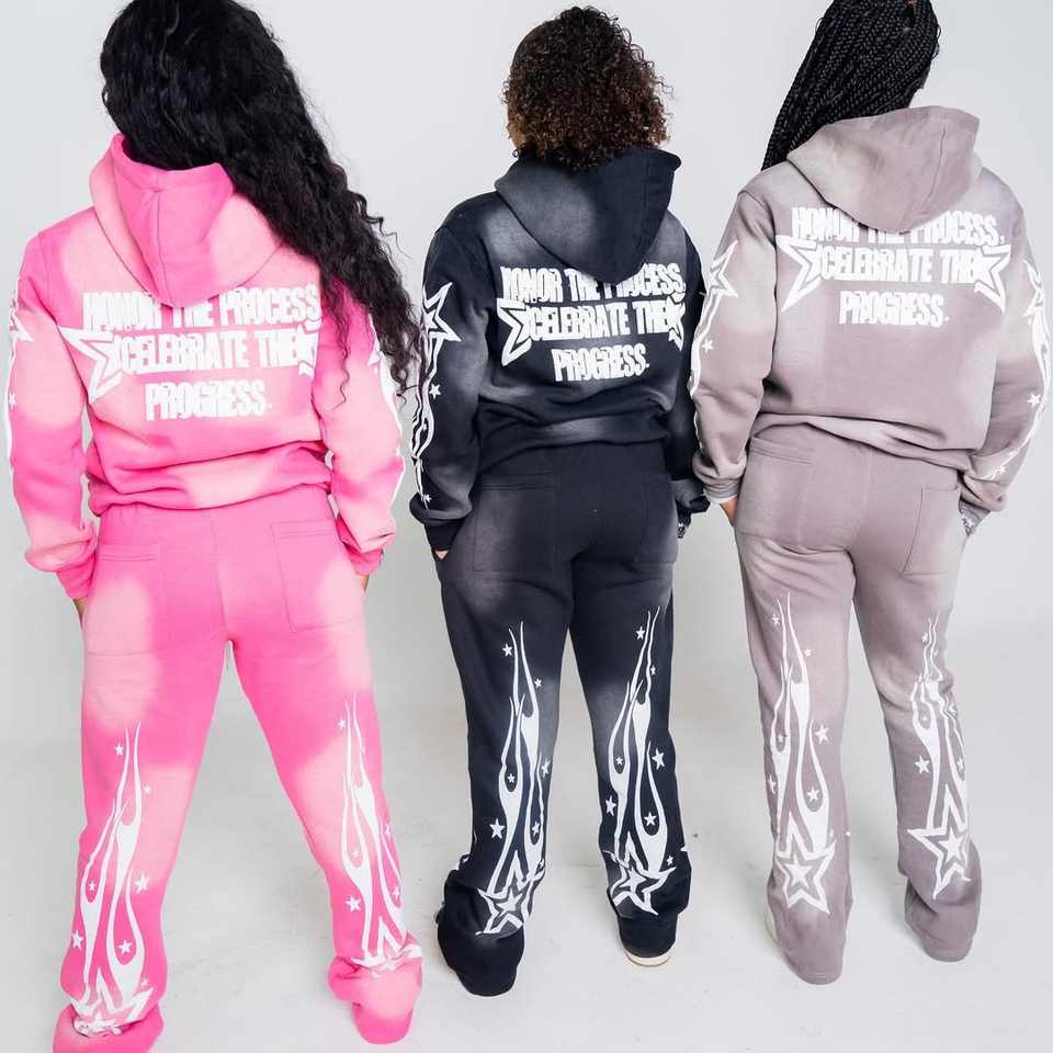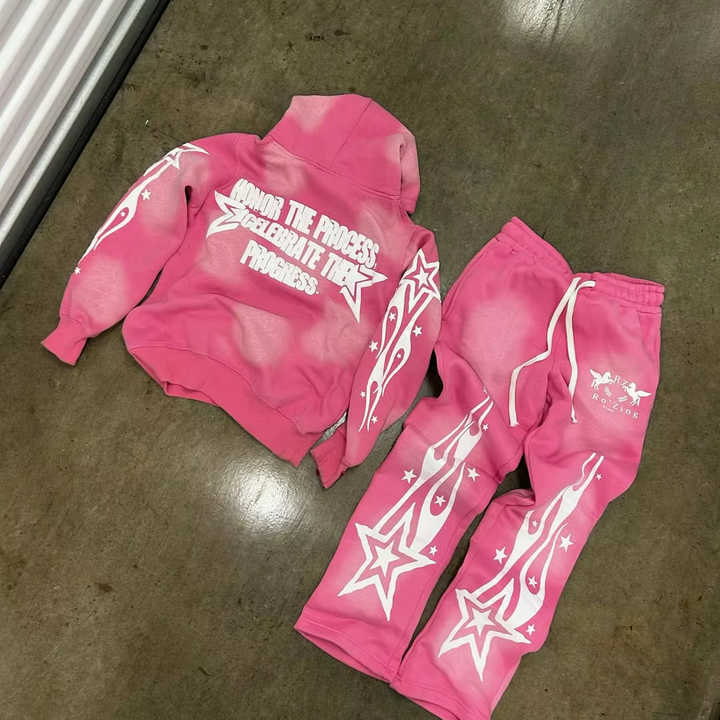 เซ็ตกางเกงฮู้ดและกางเกงวอร์มแนวสตรีทแวร์แบบมีซิปรูดและซักแบบเป็นกรดชุดวอร์มแนววินเทจชุดวอร์มกางเกงพลูแรงเหงื่อออกแบบได้ตามต้องการสำหรับผู้ชาย