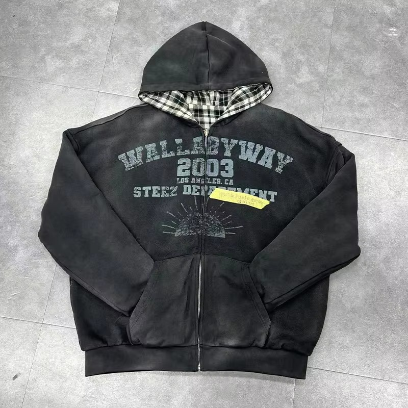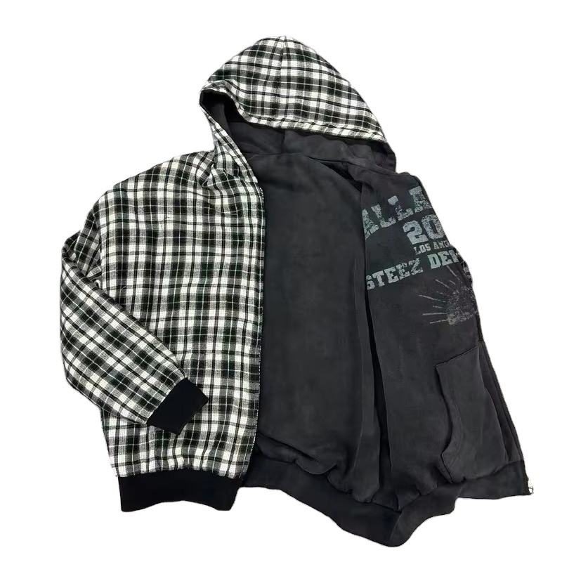 เสื้อมีฮู้ดผ้าฝ้ายเฮฟวี่เวทสำหรับผู้ชายเสื้อมีฮู้ดผ้าสักหลาดลายสก็อตสองด้านโอเวอร์ไซส์แบบกำหนดเอง