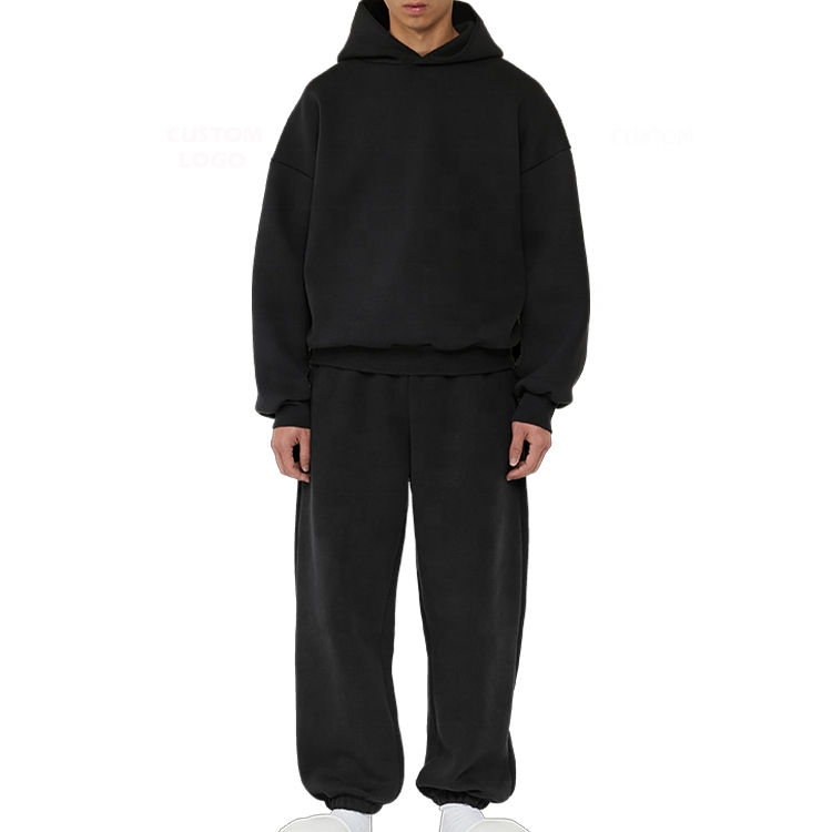 ชุดวอร์มผ้าฝ้ายมีฮู้ดสำหรับผู้ชายชุดวอร์ม2ชิ้นแบบสวมหัวไซส์ใหญ่