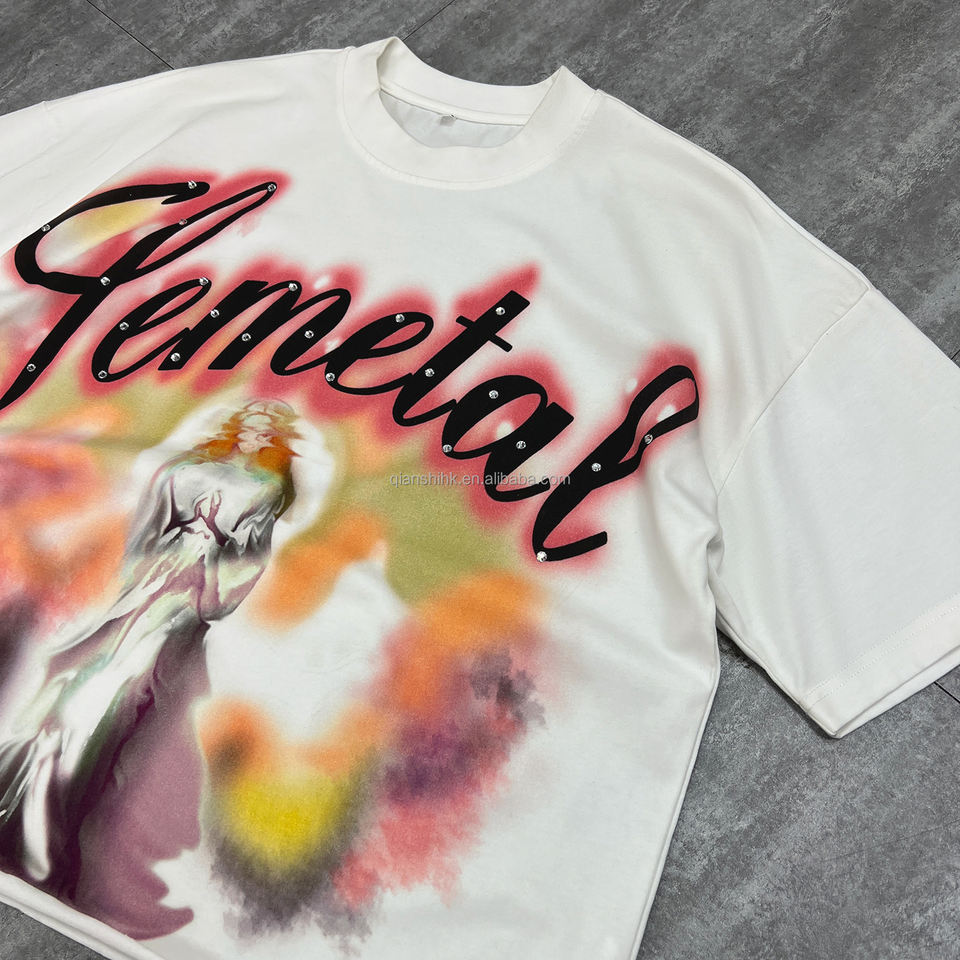 Streetwear High Quality Drop Shoulder Tshirts Custom Printed Graphic t Shirts Oversized Cotton Rhinestone Men's T-shirt