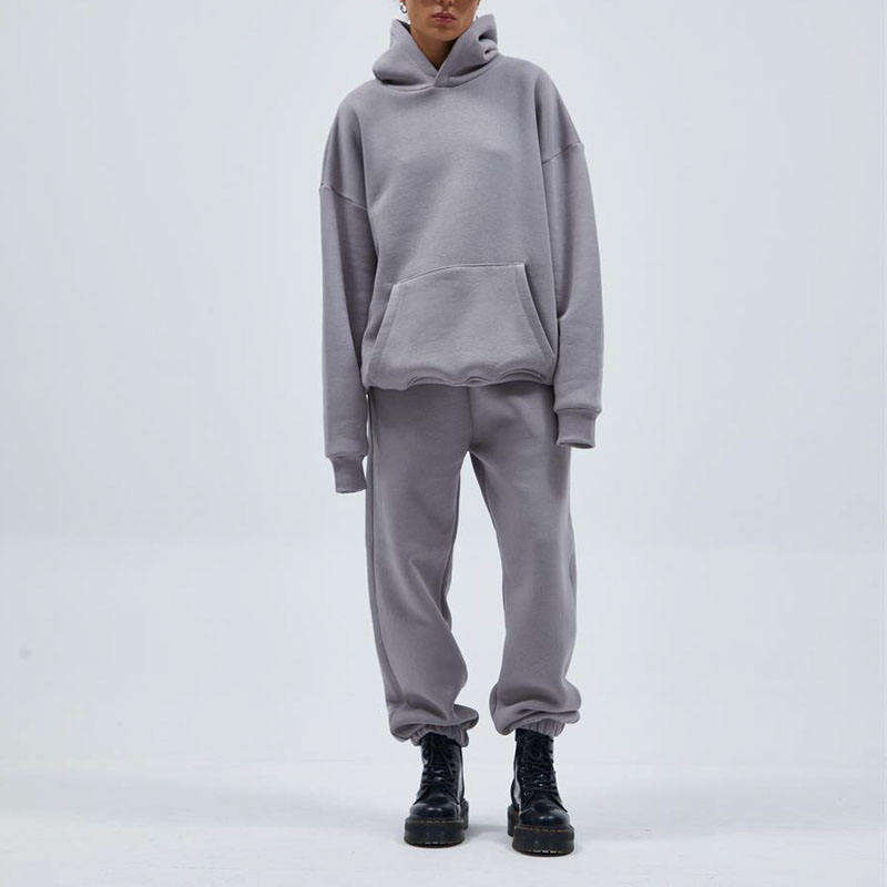 ชุดวอร์ม2ชิ้นสำหรับผู้ชายชุดวอร์มผ้าฟลีซแบบสวมหัวแนวสตรีท