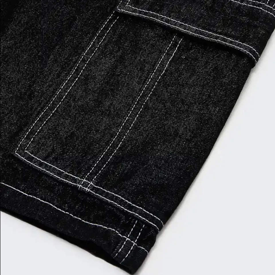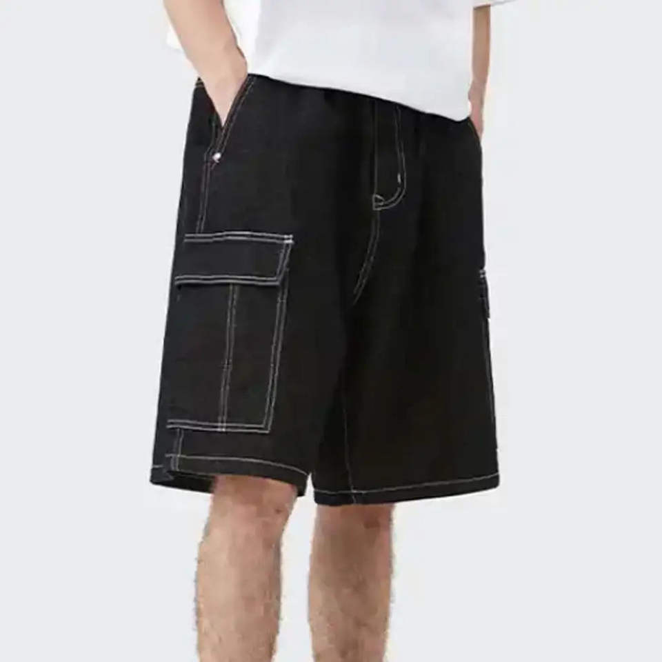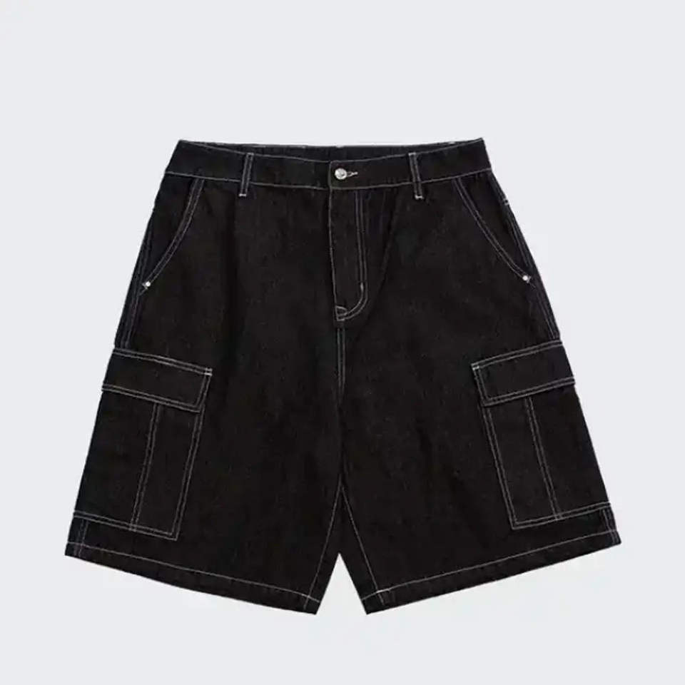 กางเกงขาสั้นคาร์โก้ผ้าเดนิมแคนวาสสไตล์วินเทจทรงหลวมฮิปฮอปสตรีทแวร์ 5 นิ้ว ระบายอากาศได้ดี แห้งเร็ว ผ้าฝ้าย 100% สำหรับผู้ชาย