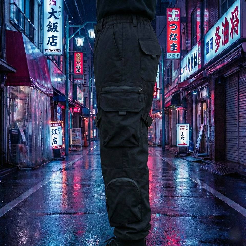 กางเกงจ็อกเกอร์สตรีทแวร์ฮิปฮอปผู้ชาย สไตล์ไซเบอร์พังก์ แทคติคอล คาร์โก้ ดาร์กวีแวร์ ผ้าฝ้าย 100% กันน้ำ เป็นมิตรกับสิ่งแวดล้อม ระบายอากาศได้ดี