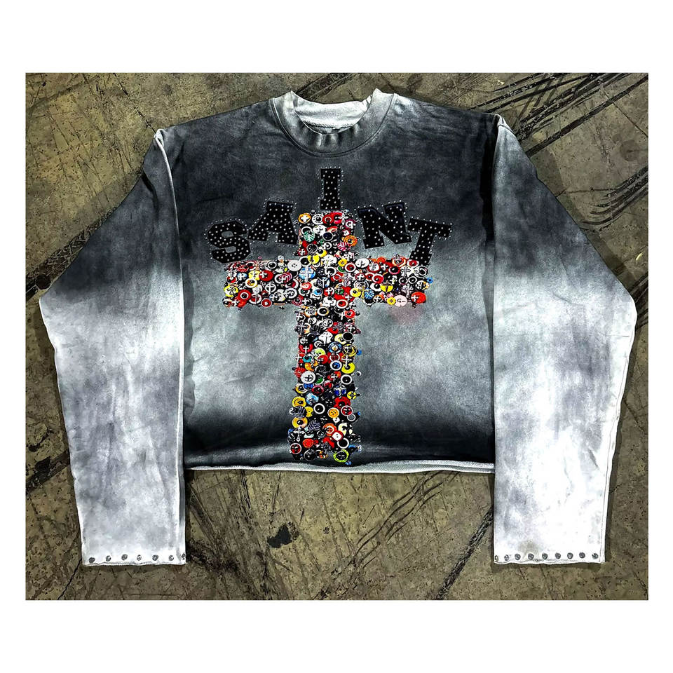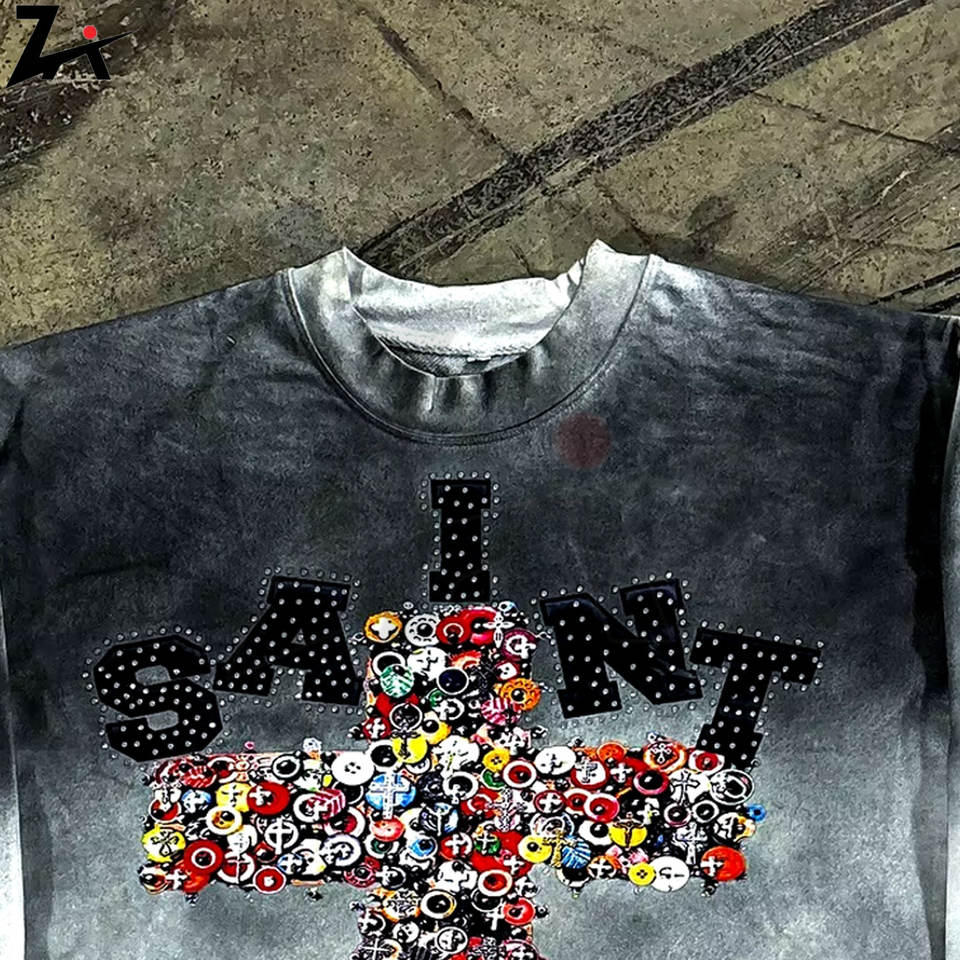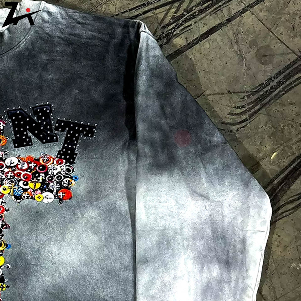 เสื้อยืดแขนยาวสไตล์สตรีทแวร์สำหรับผู้ชายผู้หญิงเสื้อสเวตเชิ้ตแบบสวมหัวดีไซน์สีไล่ระดับย้อนยุคเสื้อทรงหลวมลำลอง