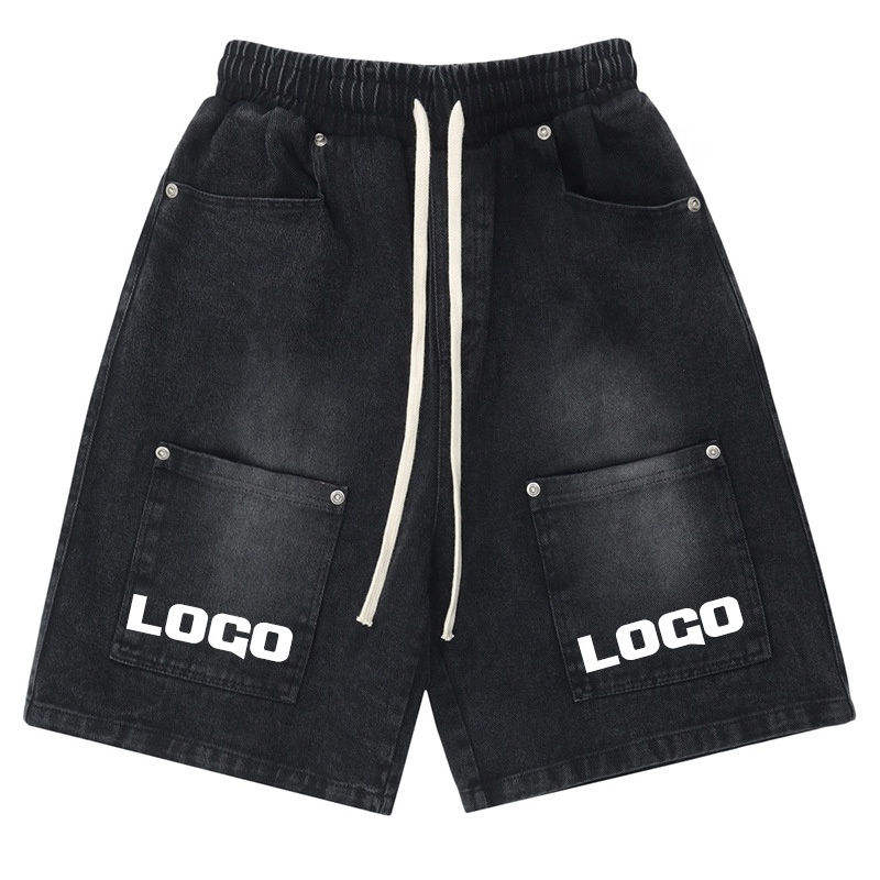 กางเกงยีนส์ขาสั้นทรงหลวมสไตล์สตรีทแวร์สำหรับผู้ชาย กางเกงยีนส์ขาสั้นผ้าแคนวาสวินเทจ กางเกงขาสั้นทรงหลวมขาดๆ สำหรับเด็กผู้ชาย