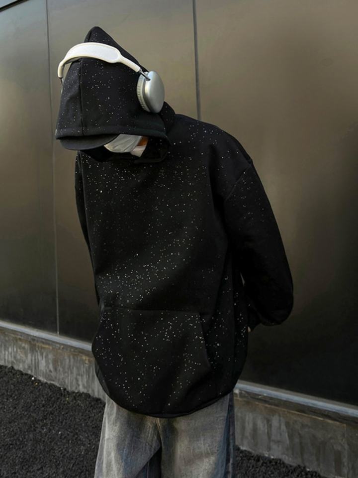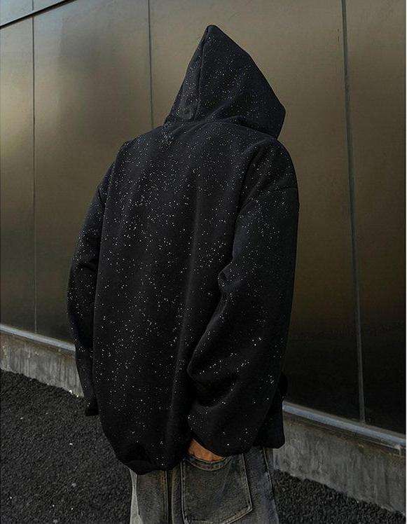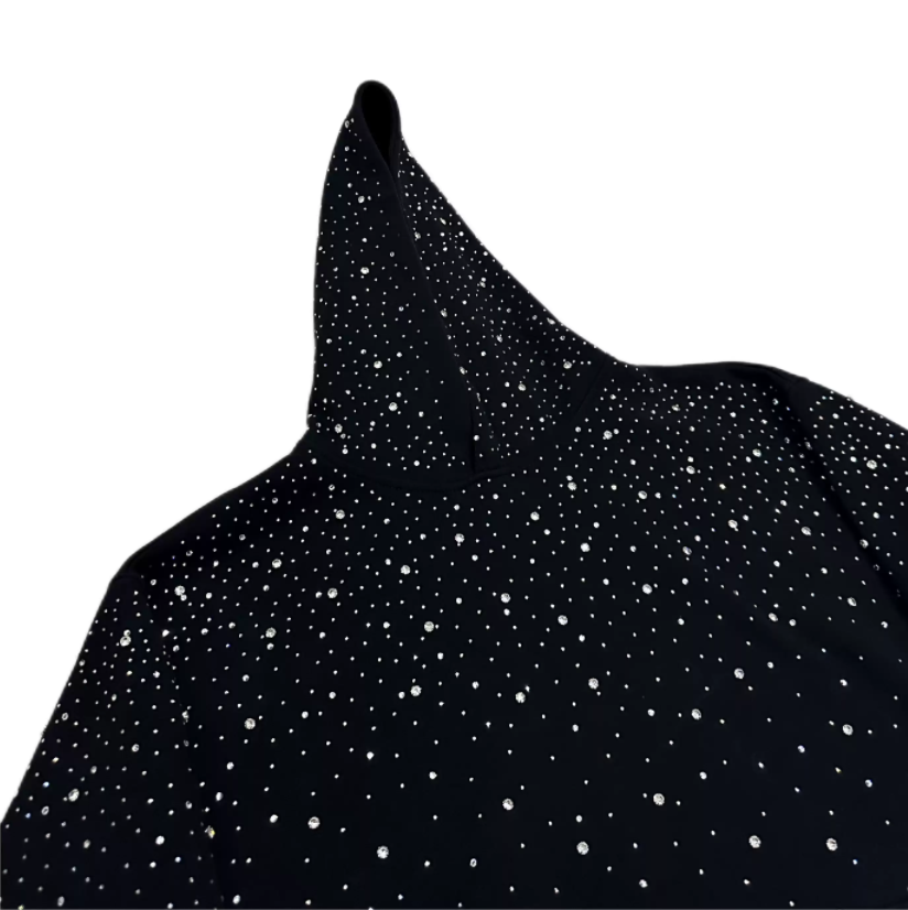 ผู้ผลิตเสื้อผ้าสตรีทแวร์ เสื้อฮู้ดดี้ผู้ชายแบบถักลาย 3 มิติ ประดับกลิตเตอร์สีดำทั้งตัว ตกแต่งด้วยคริสตัลเต็มตัว ทรงโอเวอร์ไซส์ ระบายอากาศได้ดี ผลิตจากผ้าฝ้าย 100%