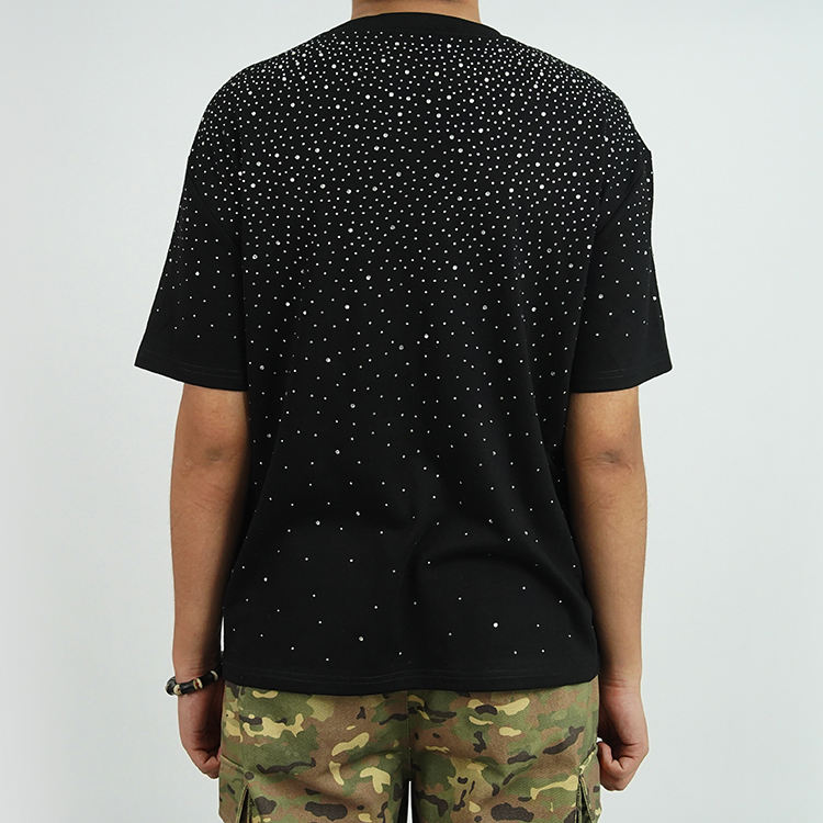 เสื้อยืดสตรีทแวร์วินเทจลำลองทรงโอเวอร์ไซส์ ผ้าฝ้ายถัก 100% หนัก 260 กรัม ตกแต่งด้วยคริสตัล 3 มิติ โลโก้เปล่าแบบกำหนดเอง ระบายอากาศได้ดี