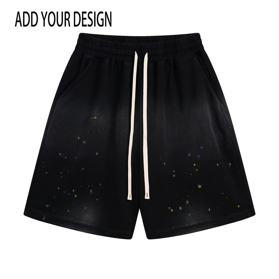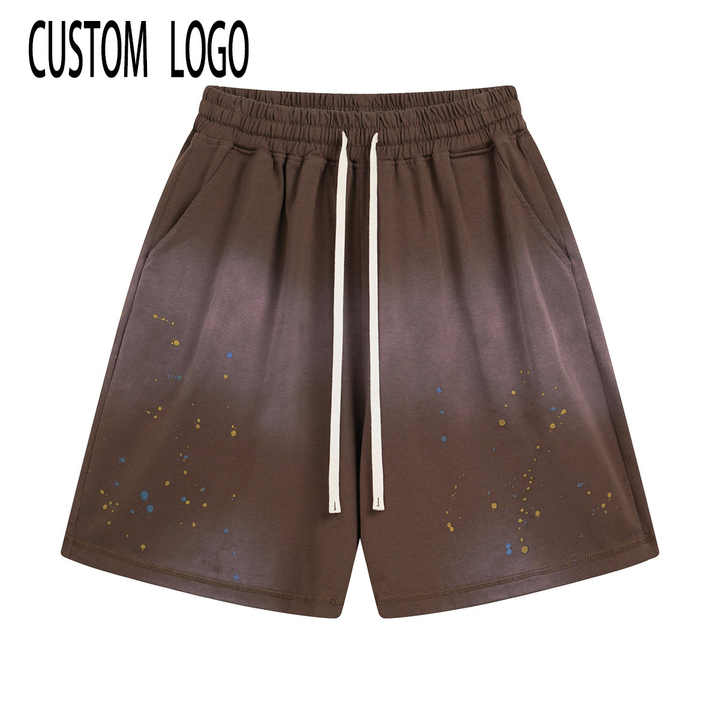 กางเกงขาสั้นผู้ชายสไตล์สตรีทแวร์ลำลองวินเทจทรงโอเวอร์ไซส์ พิมพ์ลายโลโก้ตามสั่ง ผ้าเทอร์รี่ 100% คอตตอน 325 กรัม ซักย้อมสีแบบแอซิดวอช