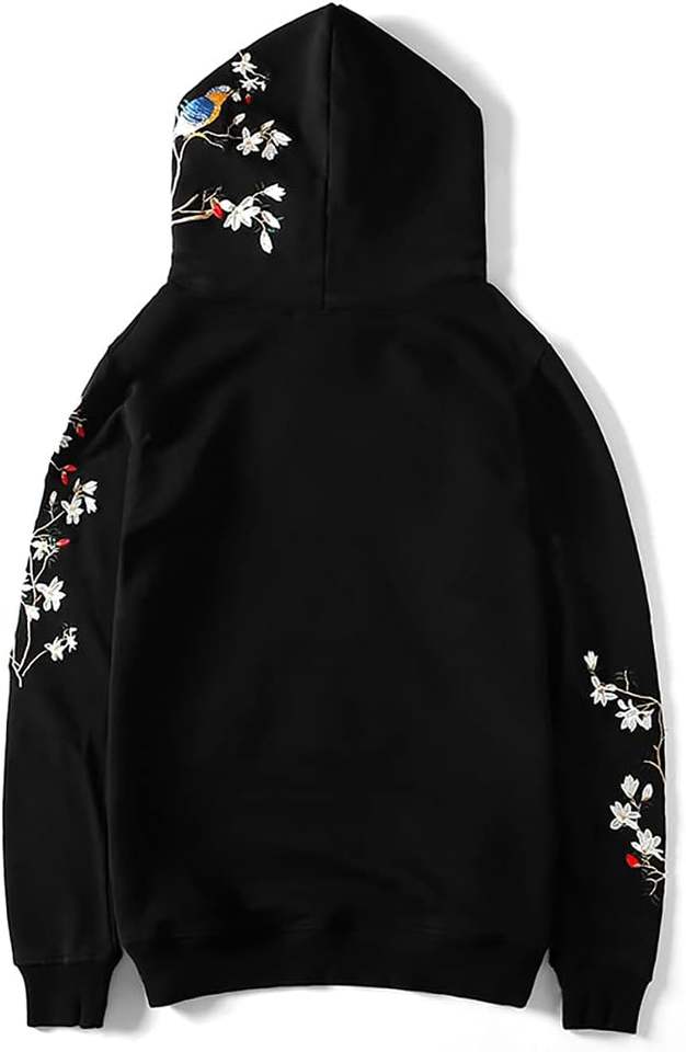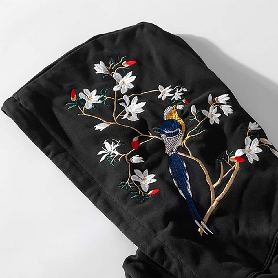 เสื้อมีฮู้ดลายกราฟิกสำหรับผู้ชาย, เสื้อมีฮู้ดลายนกกางเขนปักลายกราฟิกแนวสตรีทแวร์มีกิ่งยาว