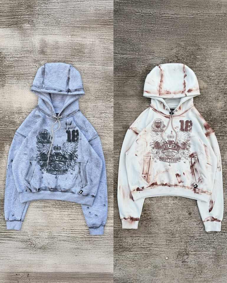 เสื้อกันหนาวสีขาวของผู้ชายแนวสตรีทซักสกปรกกางเกงวอร์มลายดีทีจีเสื้อสเวตเตอร์สีจางและเซ็ทมีฮู้ดชุดวอร์มสำหรับผู้ชาย