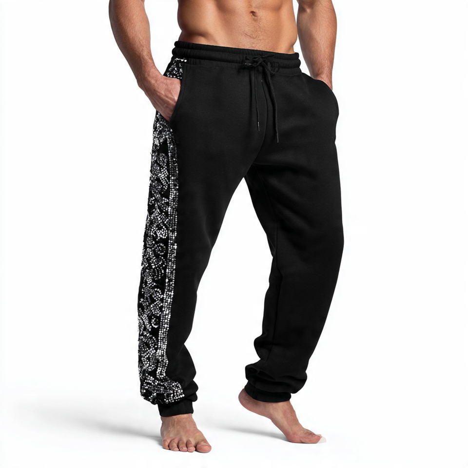 กางเกงจ็อกเกอร์ทรงโอเวอร์ไซส์สำหรับผู้ชายสไตล์สตรีทแวร์ | กางเกงวอร์มขากว้างประดับเพชร | กางเกงขายาวผ้าฟลีซทรงแบ็กกี้แบบฟอกสี