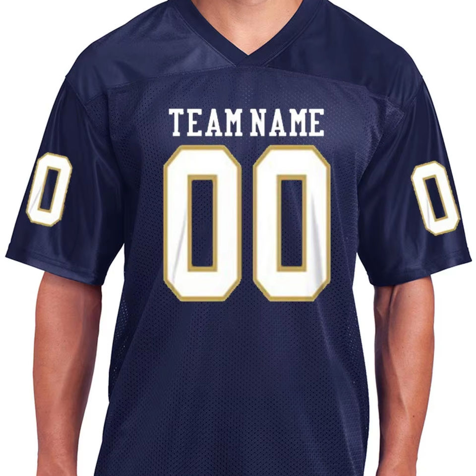 เสื้อเจอร์ซีย์ผู้ชายแนวสตรีทเสื้อเจอร์ซีย์ผ้าตาข่ายอเมริกันขนาดใหญ่เสื้อฟุตบอลอเมริกัน100% ผ้าโพลีเอสเตอร์ออกแบบได้ตามต้องการ