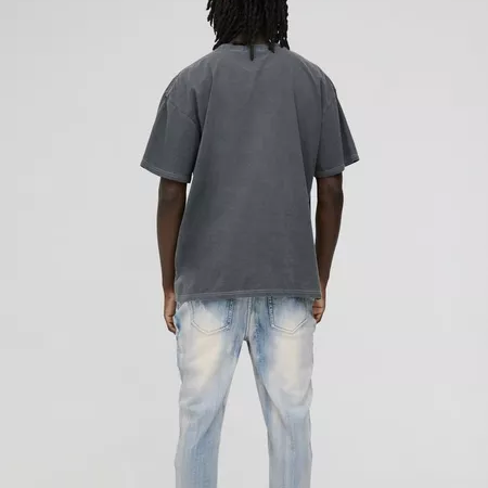 เสื้อยืดสตรีทแวร์โอเวอร์ไซส์ ดีไซน์โลโก้แบบกำหนดเอง ผ้าคอตตอน 270 กรัม ล้างสีแบบแอซิดวอช เสื้อยืดเนื้อหนา สไตล์ฮิปฮอป ทำให้เสื้อยืดดูเก่า