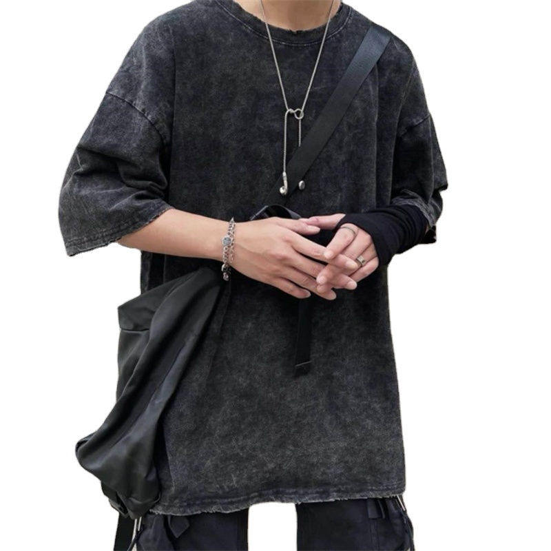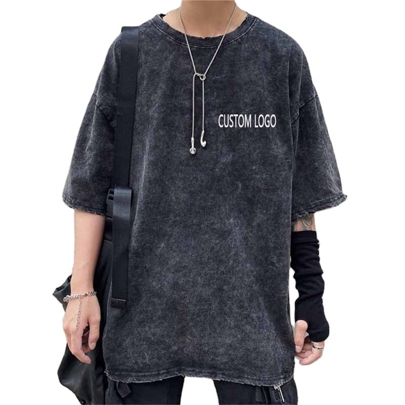 เสื้อยืดสตรีทแวร์โอเวอร์ไซส์ผู้ชาย ระบายอากาศดี สไตล์วินเทจ ล้างสีแบบแอซิด แขนสั้น 220 กรัม ไซส์ใหญ่ สำหรับฤดูร้อน ใส่เที่ยวกลางแจ้ง ขายส่ง OEM