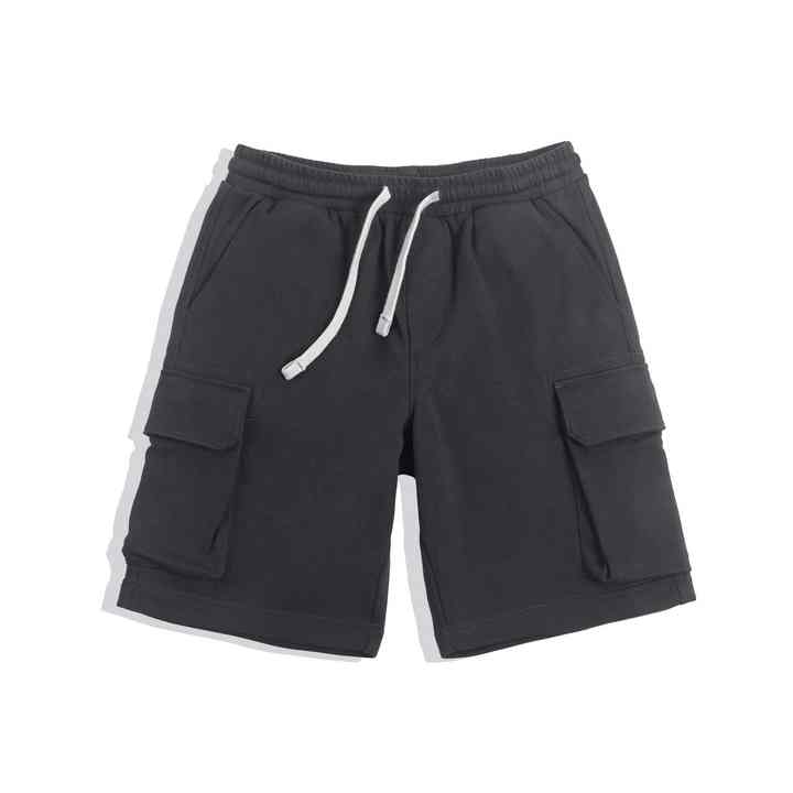 Streetwearขนาดบวกกางเกงขาสั้นสินค้าผ้าฝ้ายเทอร์รี่ฝรั่งเศสกางเกงขาสั้นสินค้าผู้ชาย6กระเป๋าCargo Drawstringกางเกงขาสั้นBreathableสีทึบ